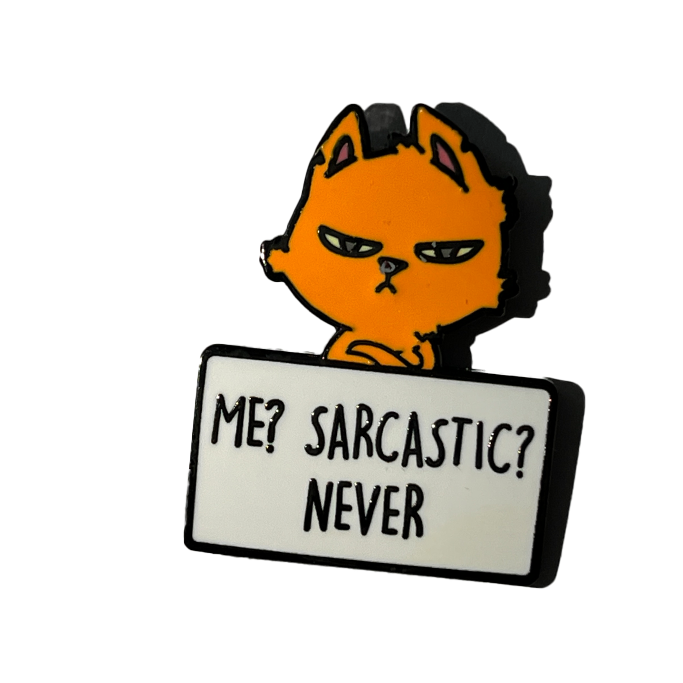 ¡Demuéstrale a todos que la sarcasmo es parte de tu personalidad con este pin! Con el diseño de un gato, este pin es el accesorio perfecto para añadir un toque divertido y sarcástico a cualquier outfit.