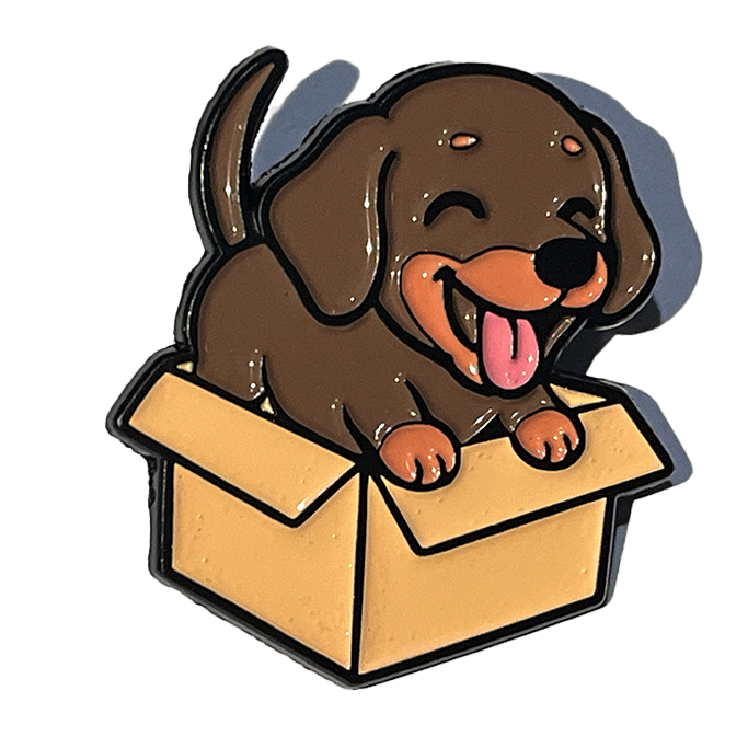 ¡Atención, amantes de los perritos! Esta salchicha dentro de una caja es un pin que hará que tu chaqueta brille como un sol (o al menos un día nublado). Lleva a tu perrito favorito a todas partes sin necesidad de pasearlos. ¡Es la forma más divertida de mostrar tu amor canino!