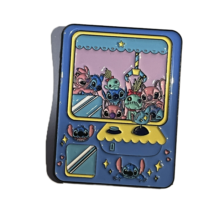 ¡Conéctate a la diversión con este pin de Stitch en la máquina de garra! Es como tener a Stitch (y a Angel) en tu bolsillo, listo para robar corazones. Perfecto para quienes buscan un toque de locura en su atuendo.
